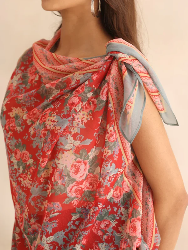 Experience sophistication with our Red Cowl Neck Printed Sleeveless Drape Top with Cami. Designed to offer a flattering draped silhouette, this top exudes modern charm and timeless style.